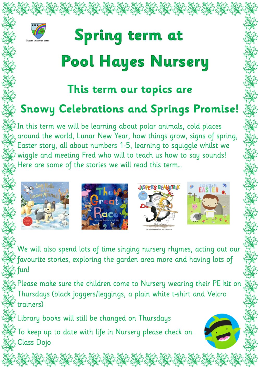 Class Dojo can be used for important messages, Nursery staff will respond as soon as possible.