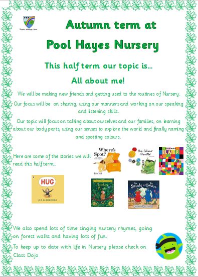 Helping your child at home One of the best ways to help your child is to read stories to them regularly. This will not only help with listening skills but also their speaking, vocabulary and imagination. Throughout the year in Nursery we will focus on different topics and I will recommend books that go along with these. Including your child in daily tasks such as getting dressed themselves, polishing (with a sock on their hand) or setting the table for dinner will develop independence. Also try singing Nursery Rhymes and counting songs. Look on the “Hungry Little Minds” website for other suggested activities.