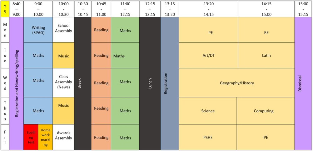 Homework will be given out on a Friday and it is expected back in on a Wednesday.